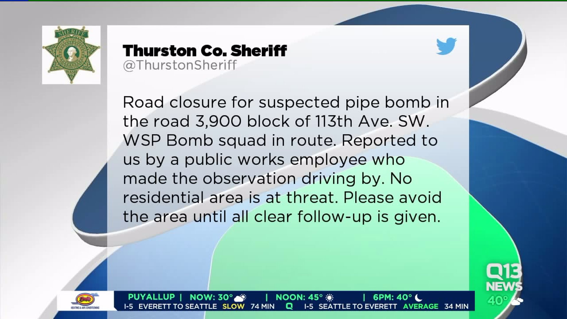 Deputies investigating suspected pipe bomb in Thurston County
