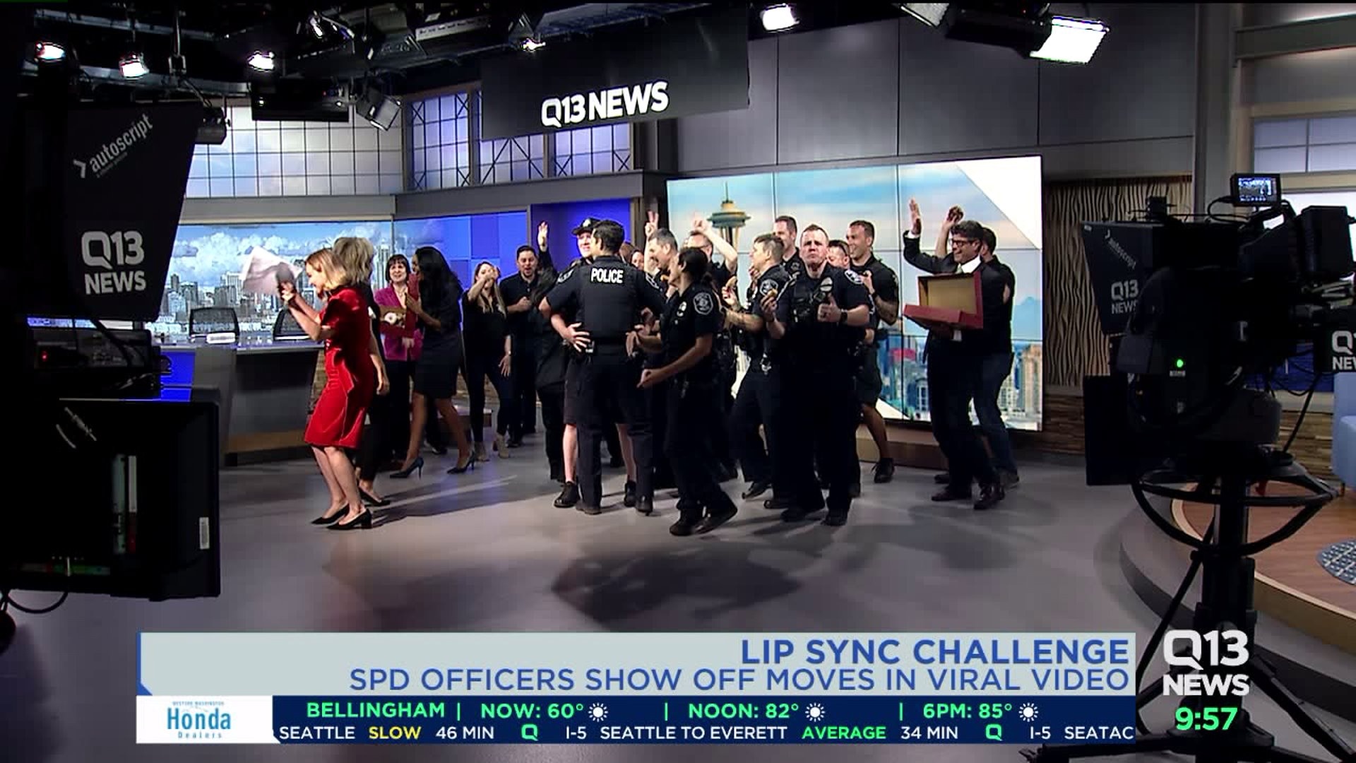 Q13 surprises SPD officers from viral lip sync challenge video
