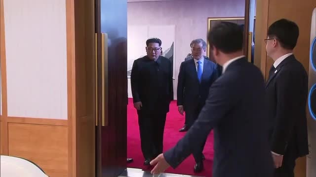 KOREA SUMMIT: PRES. MOON AND KIM JONG UN ENJOY PRIVATE TALK