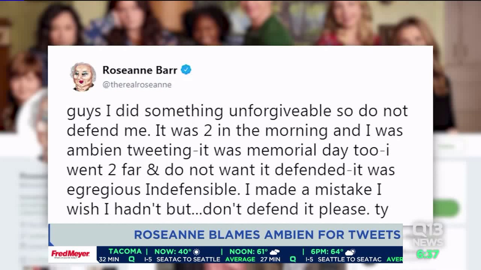 Roseanne Barr blames Ambien: `I`m not a racist, just an idiot`