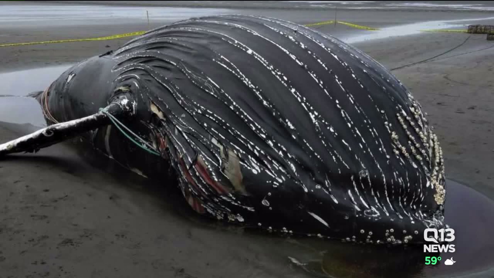 Dead humpback whale washes ashore