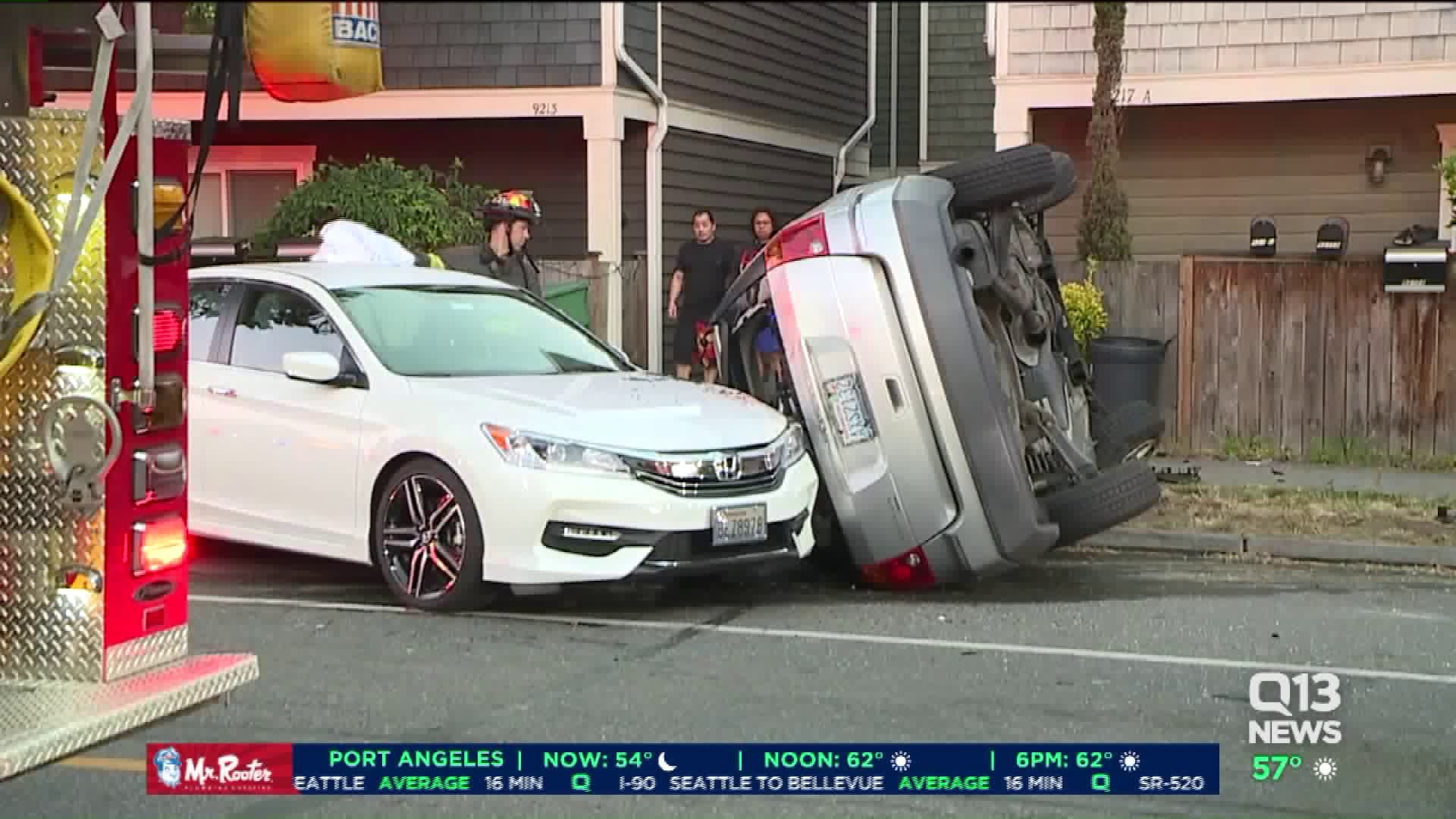 Family rescued after crash in north Seattle