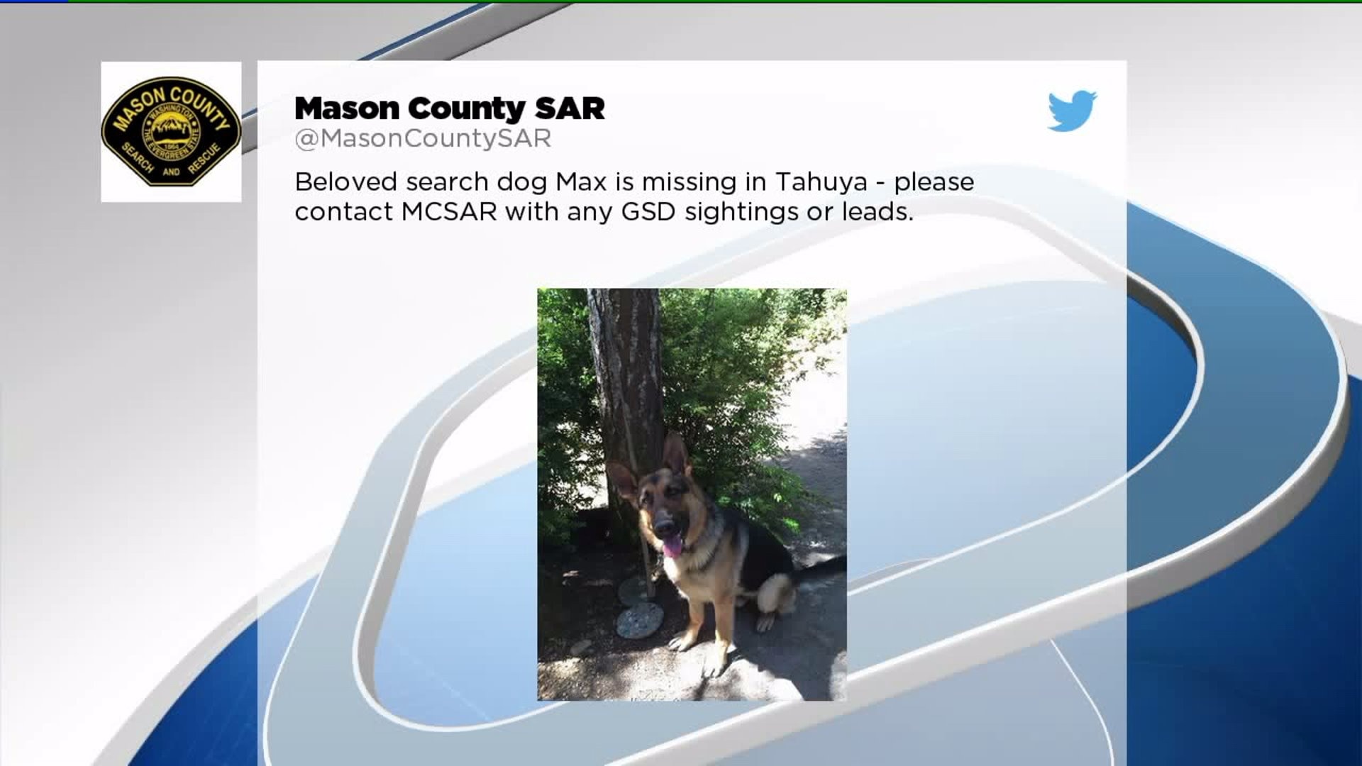 Missing: search and rescue dog, Max, last seen in Tahuya