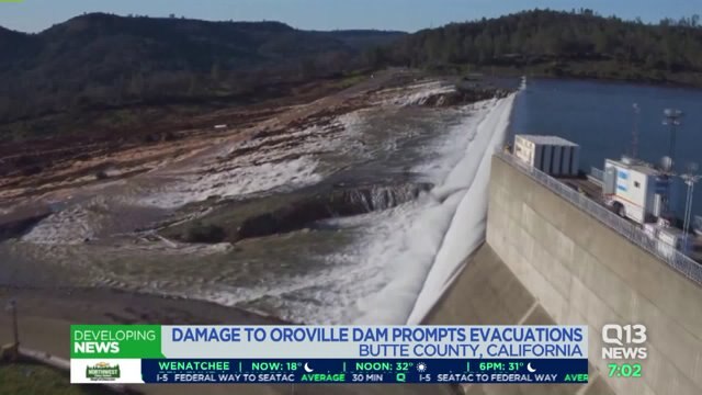 Nearly 200,000 evacuated in California as part of highest dam in US could fail