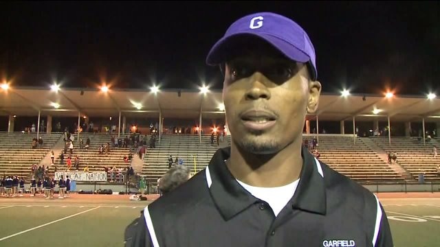 Garfield High School football coach on team kneeling