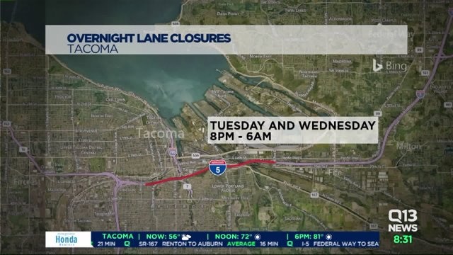 Overnight construction closing lanes on I-5 in Tacoma