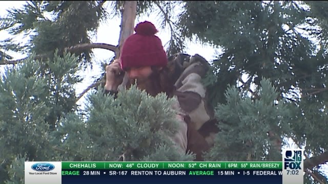 Man won`t climb down from huge sequoia tree in downtown Seattle