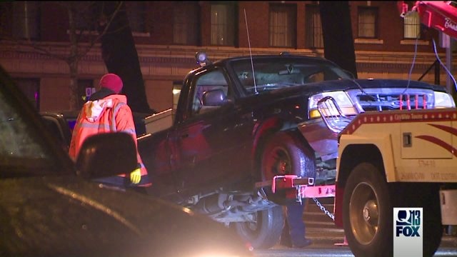 Pickup truck drives up on federal courthouse steps