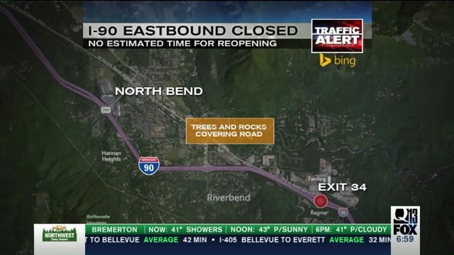 I-90 eastbound closed at North Bend after rock slides