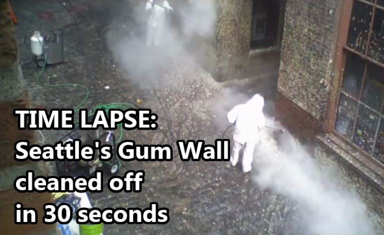 Watch Seattle's iconic 'gum wall' cleaned off in 30 seconds