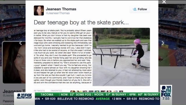 Mother sends special message to teen at skatepark. Q13 FOX News.
