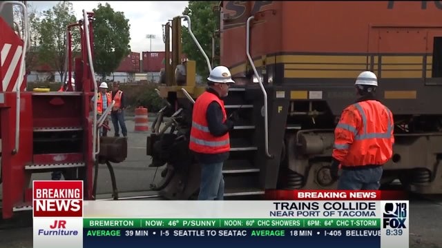 Two trains collide in Tacoma. Q13 FOX News.