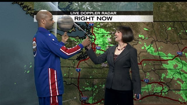 Harlem Globetrotter does the weather on Q13 FOX