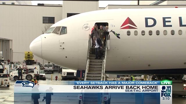 The Seattle Seahawks returned home to Washington late Monday afternoon after their heartbreaking Super Bowl loss to the New England Patriots.