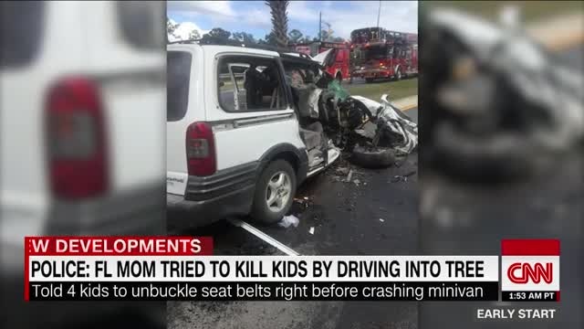 Mom crashes van after telling kids to unbuckle seat belts