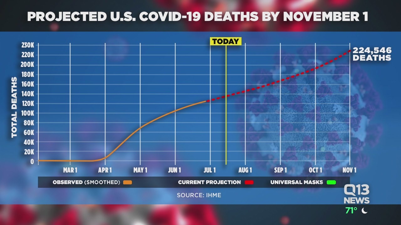 IHME projections show Americans could save more than 40,000 lives if 95% of the population wore masks.