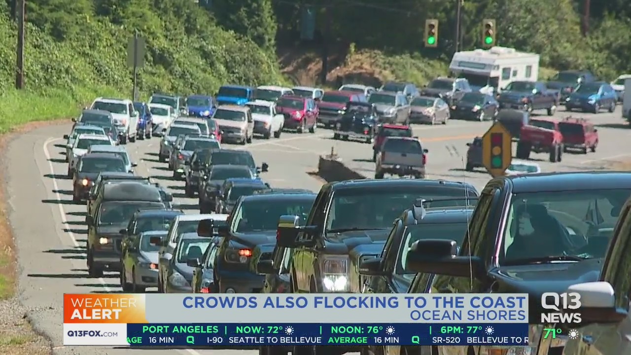 Crowds flock to local beaches such as Ocean Shores to enjoy the warm weather.