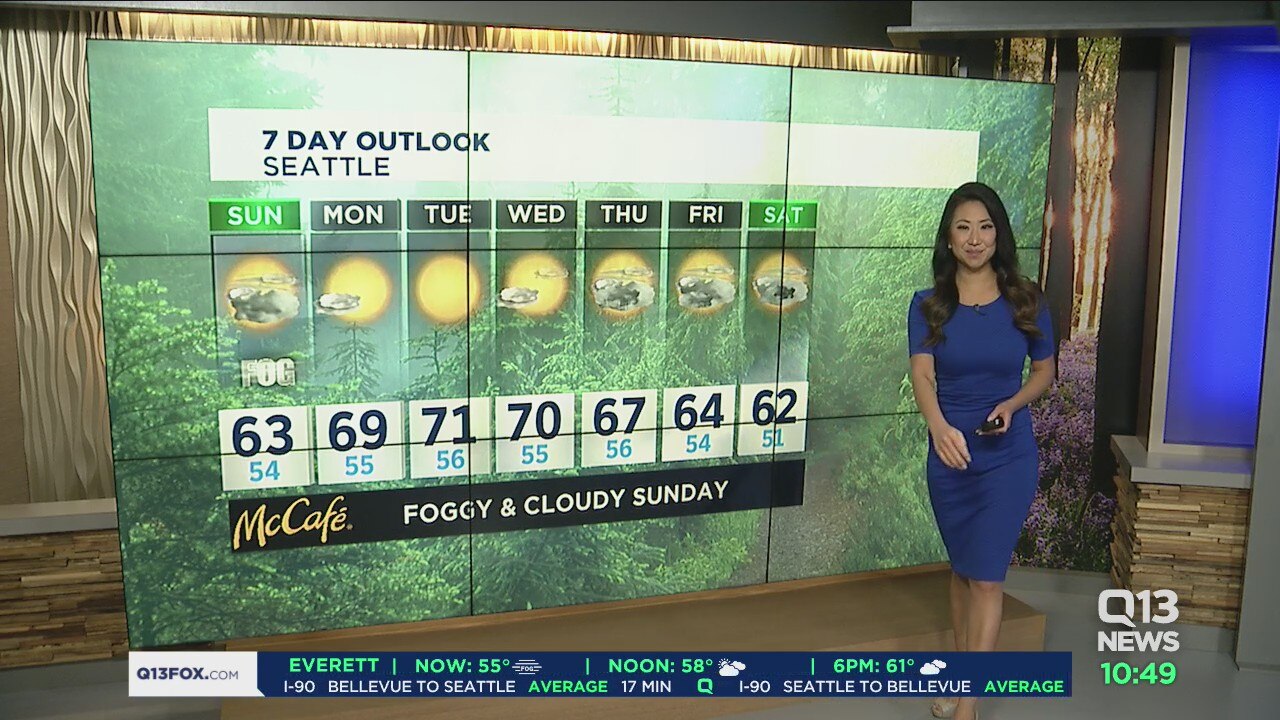 Q13 Meteorologist Grace Lim forecasts more cooler temps in the mid-60s with some fog lingering a good part of Saturday in Puget Sound.