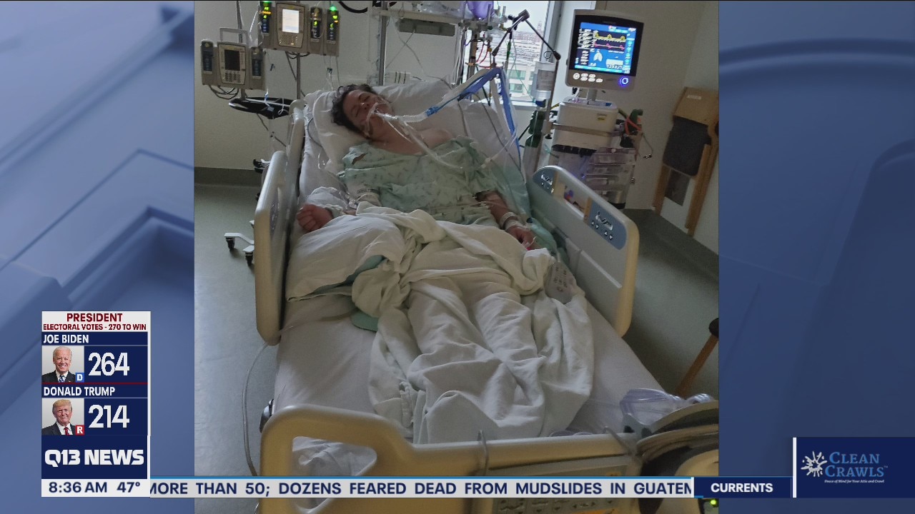 The protester who suffered a medical emergency while being arrested is in satisfactory condition but remains in the ICU at Harborview.