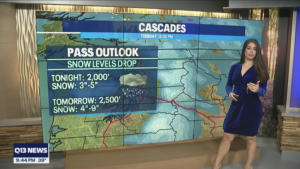 The Cascades will see several inches of snow Monday night and for the next several days. In the lowlands, Western Washington will see rain and windy conditions later this week.