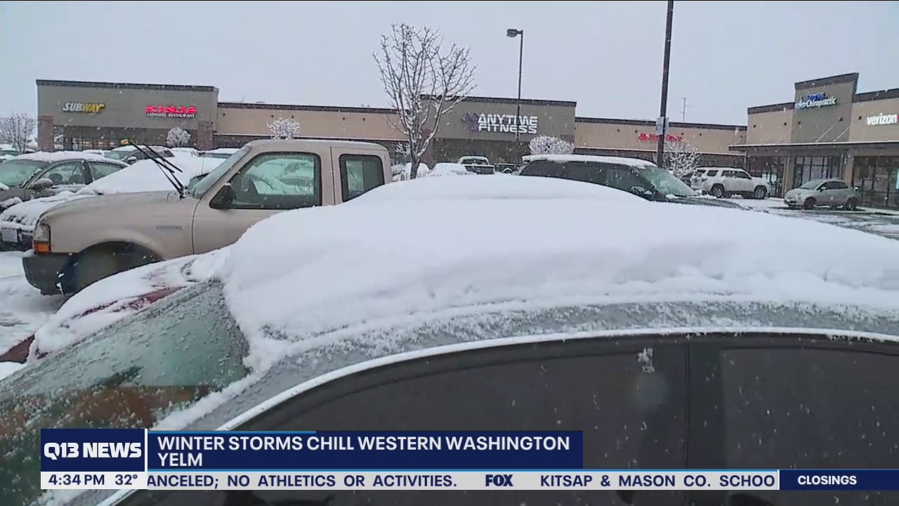 Residents in Yelm are seeing some snowfall starting Thursday. Q13's Matt Lorch reports.