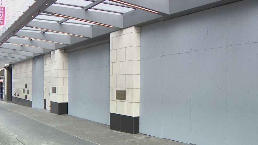 Numerous display windows were damaged Sunday night at the downtown Seattle Nordstrom store.