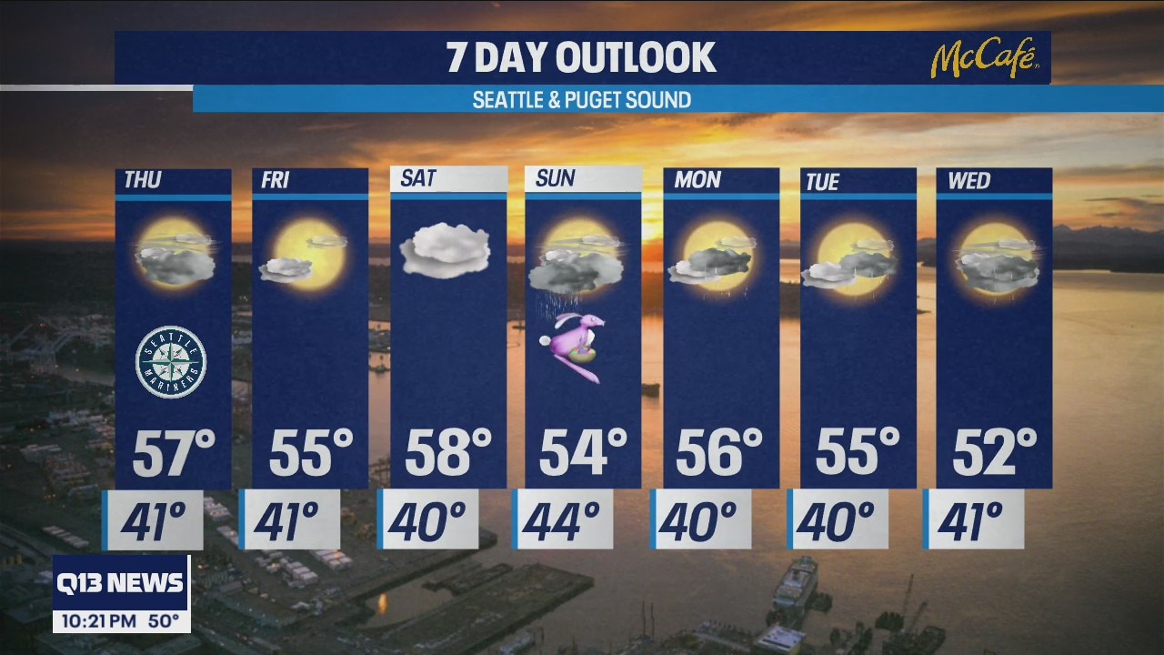 On Thursday, some clouds roll into the Puget Sound area with a slight chance or rain, but more sunshine the rest of the week. Q13 Chief Meteorologist Lisa Villegas has the 7-day forecast.