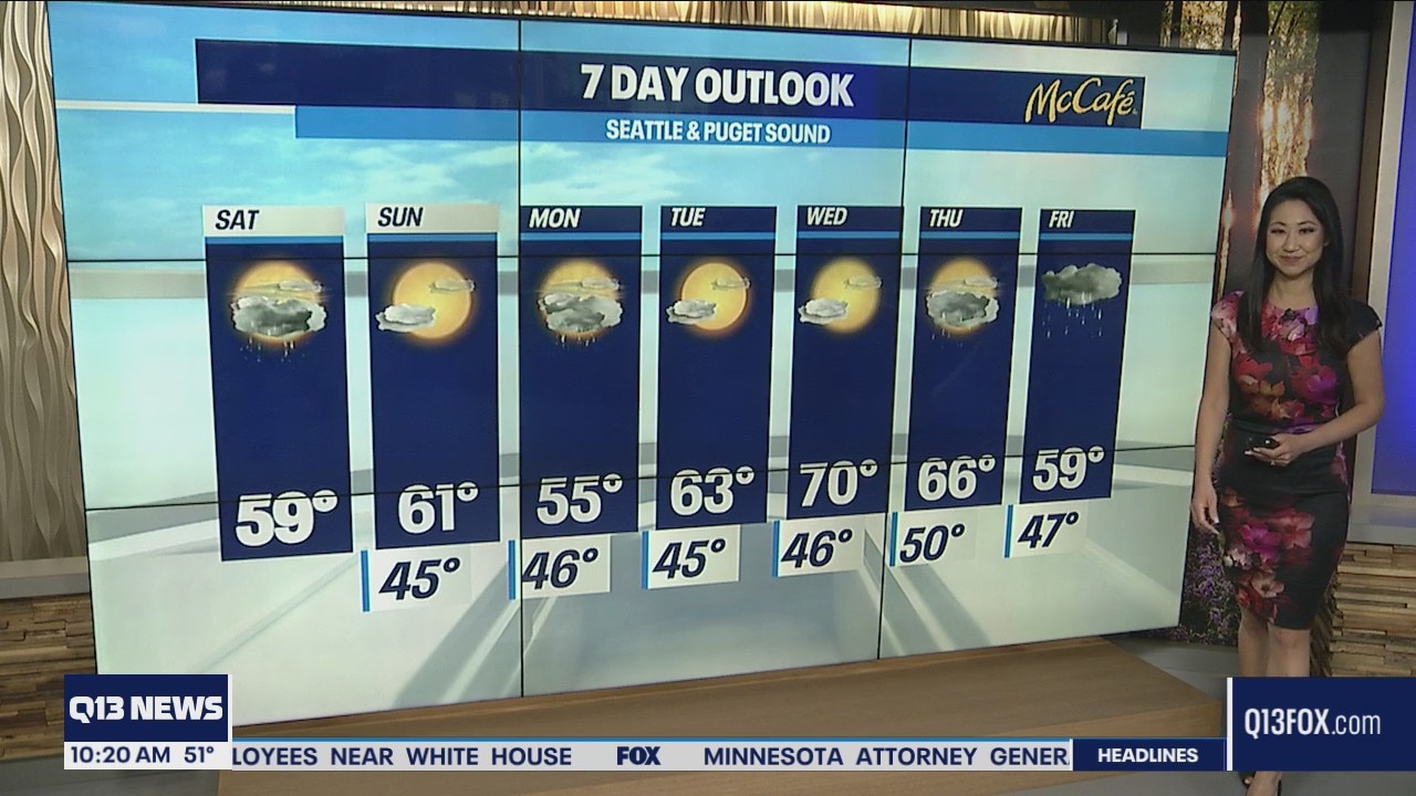 We'll see some slightly breezy conditions Saturday with scattered rain showers, but dry and sunnier weather is ahead for next week. Q13's Grace Lim has your weekend forecast.