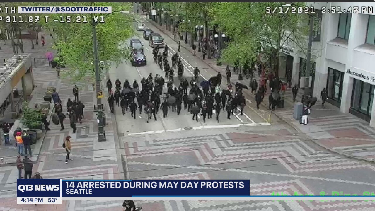 All fourteen people arrested during unpermitted May Day marches in Seattle have been released from jail, according to the city attorney's office.