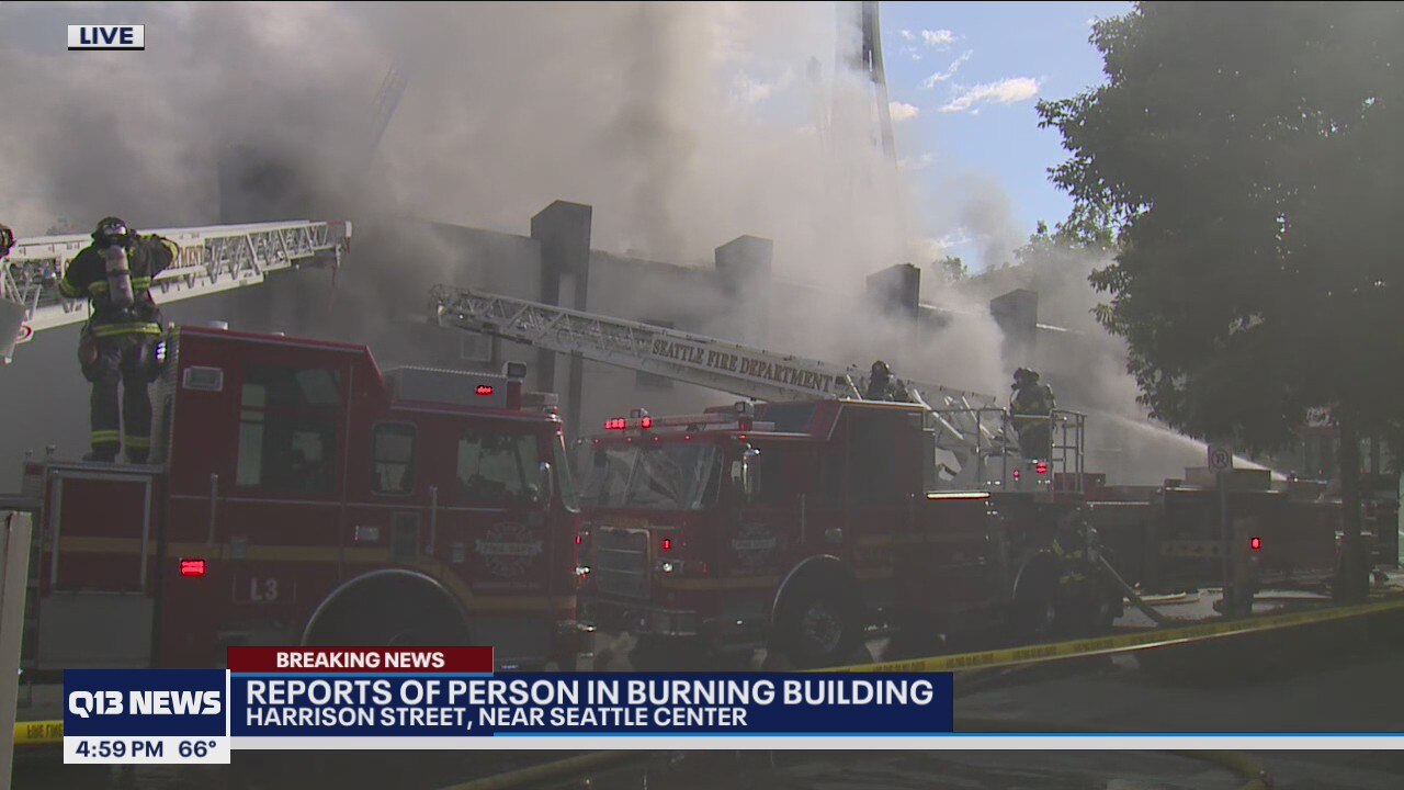 Crews are working on fighting a fire on Harrison Street, right across from MoPop. Heavy smoke can be seen and residents nearby are advised to close their windows