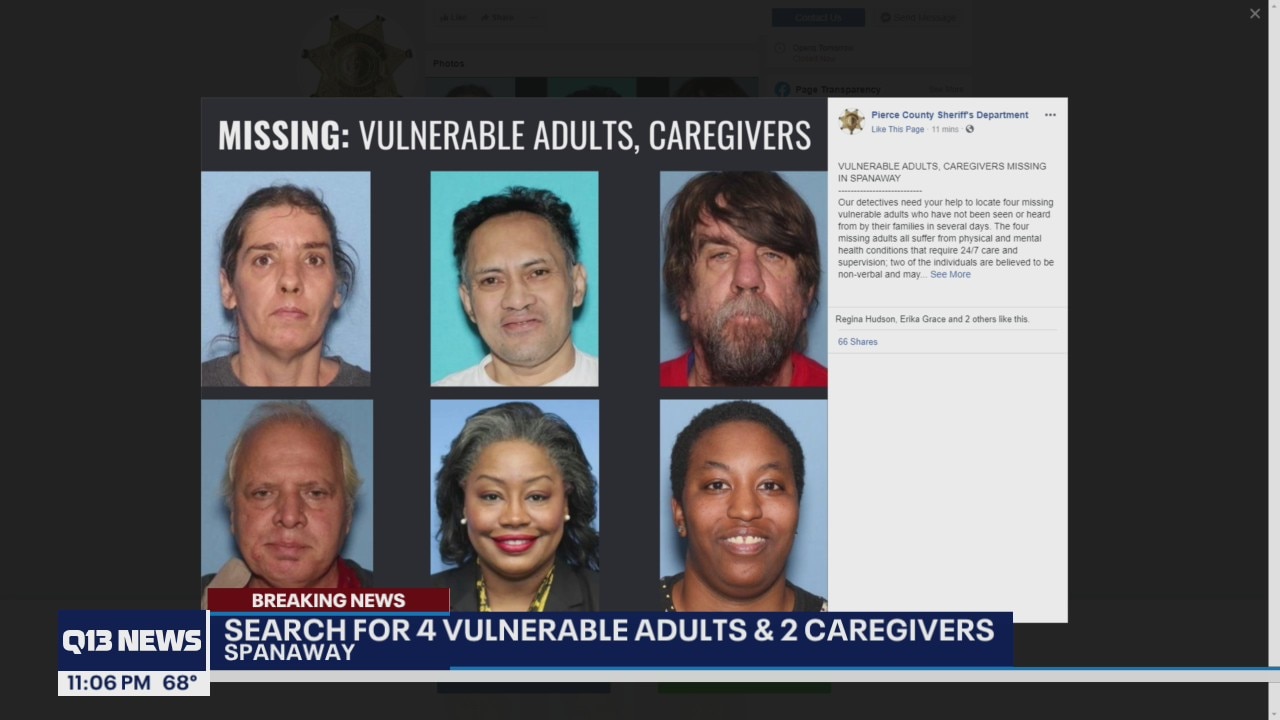 4 vulnerable adults, 2 caretakers missing out of Pierce County