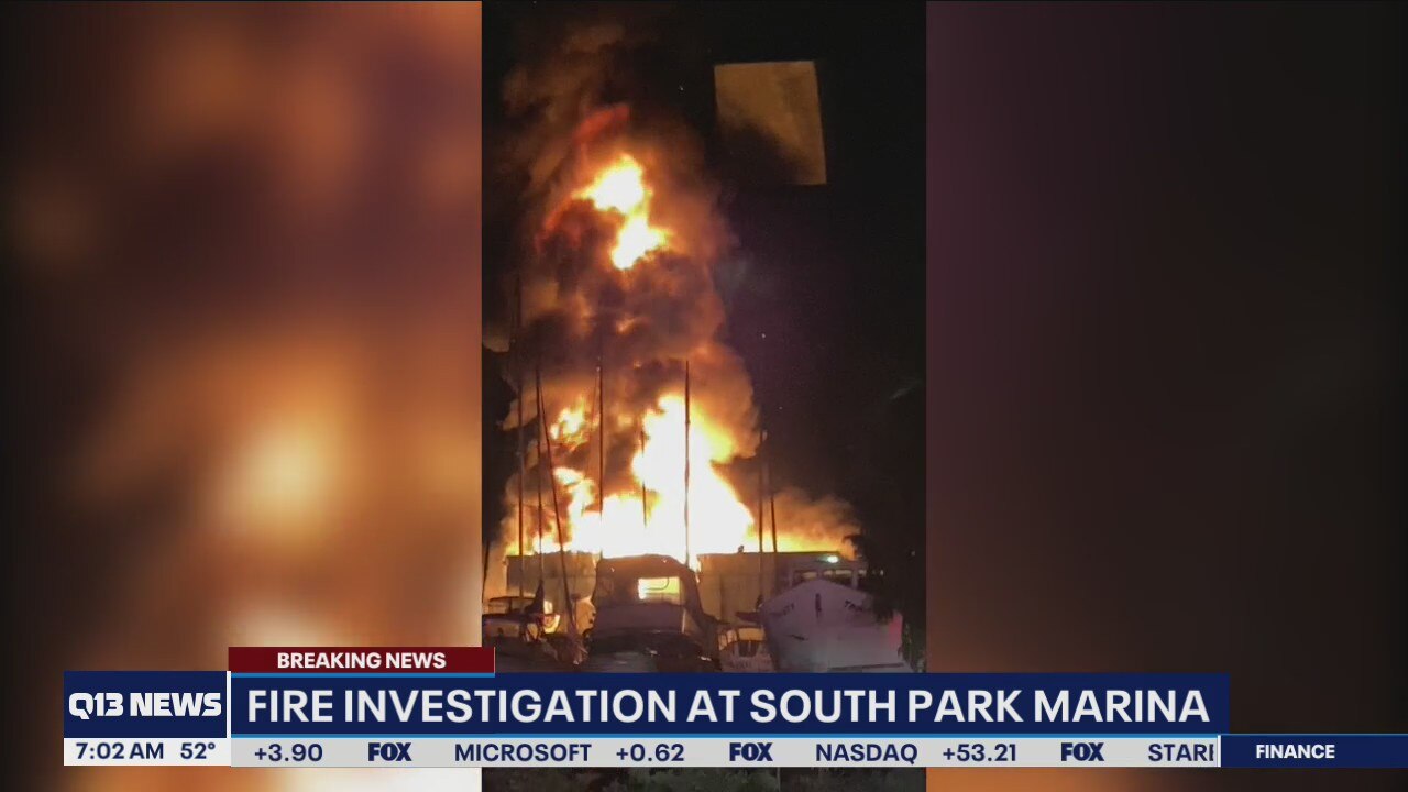 Crews are investigating a fire at a warehouse near the South Park Marina in Seattle.