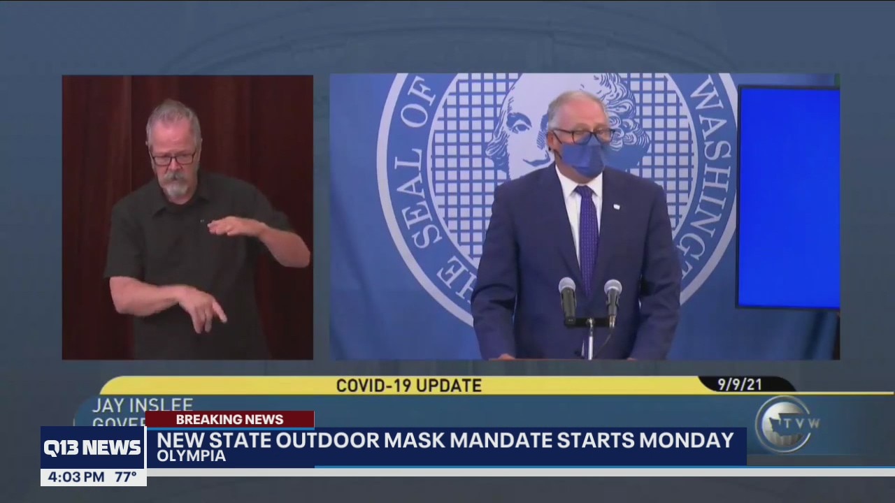 Starting Sept. 13, masks will be required statewide in outdoor gatherings of 500 or more regardless of vaccination status, Washington Gov. Jay Inslee announced.