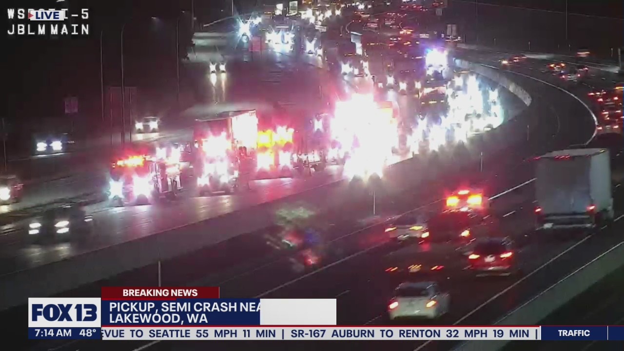 Troopers are investigating a crash involving a pick-up truck and semi-truck on I-5 near Joint Base Lewis-McCord on Wednesday morning.