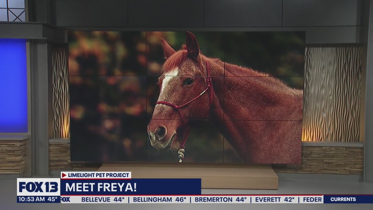 Freya is a 30-year-old Morgan type mare. Her handlers say she is a sweet, lovable and relaxed girl who "takes life in stride!"