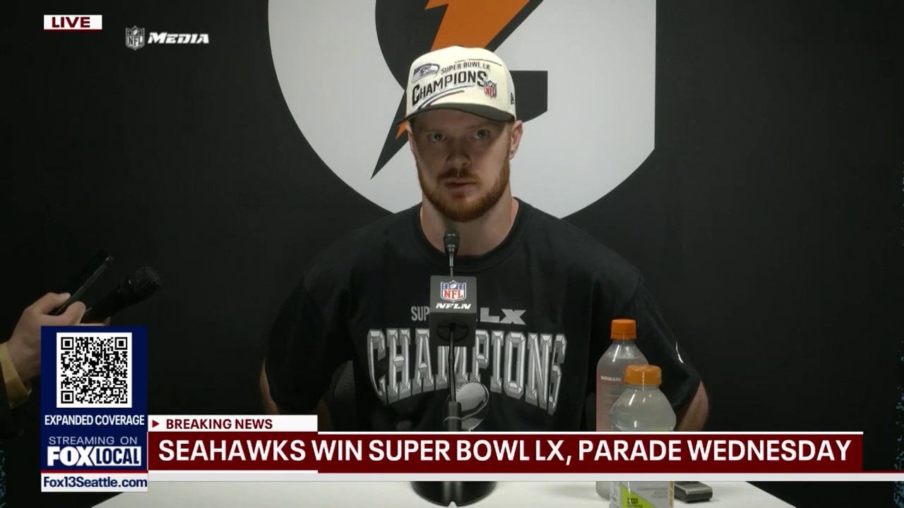 After the Seahawks’ Super Bowl LX victory, quarterback Sam Darnold and defensive lineman Leonard Williams spoke with reporters about the win, reflecting on the team’s performance and the championship moment.