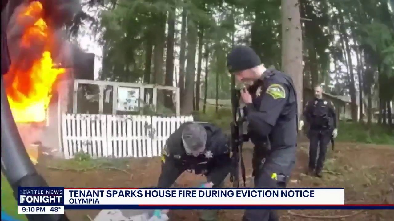 A man being evicted by law enforcement sparked a fire inside a duplex near Lacey on Wednesday, authorities said.