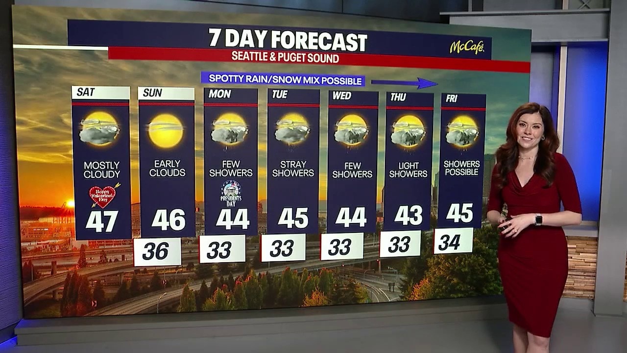 Seattle weather: mostly cloudy with cool temperatures