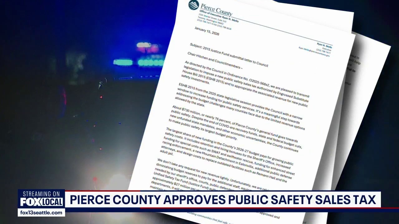 Pierce County leaders have approved a new 0.1% sales tax, known as the Justice Fund, to generate an estimated $27 million annually for public safety and criminal justice programs.