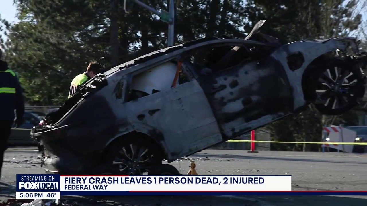 One person was killed and two others were injured in a fiery crash Friday morning at Enchanted Parkway and South 356th Street in Federal Way, police said. Investigators say a reckless driver ran into a vehicle stopped at a traffic signal, causing both vehicles to catch fire and strike a third car. The driver who caused the crash showed signs of impairment and was arrested on suspicion of vehicular homicide and vehicular assault.