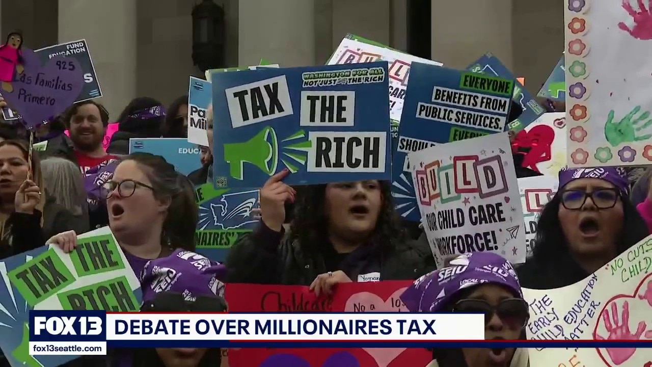 The fight to tax the income of Washington millionaires continues to be fast tracked through the legislature, and supporters rallied outside the steps of the Capitol Building in Olympia on Tuesday.