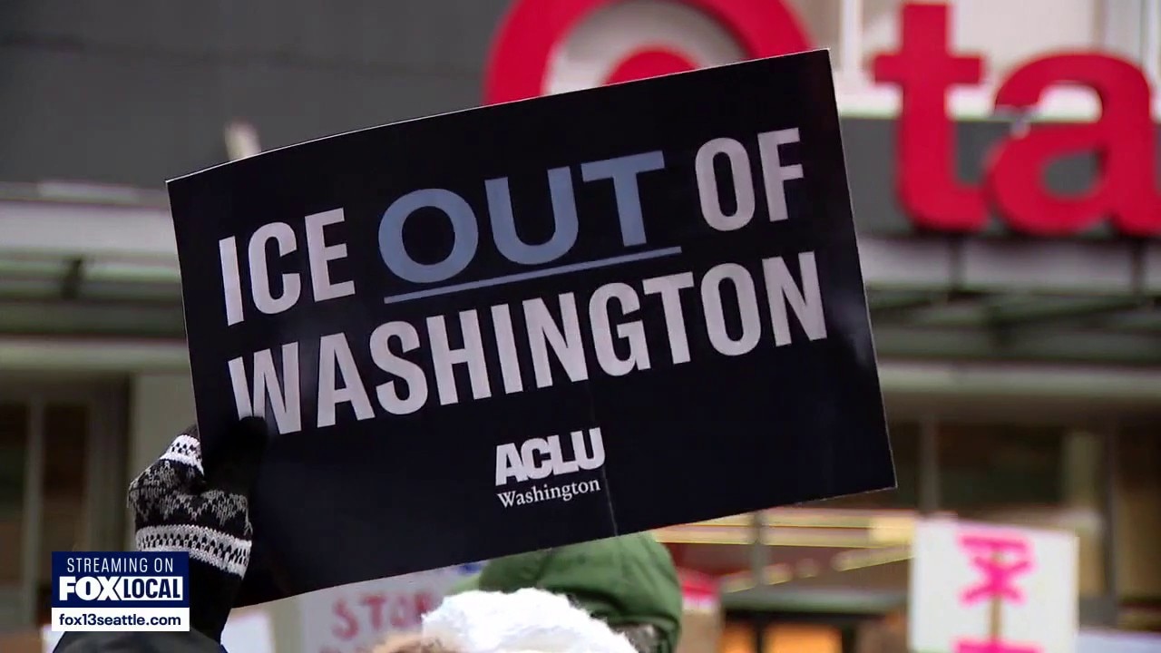 Protesters rally in Seattle during national ‘ICE Out’ day of action