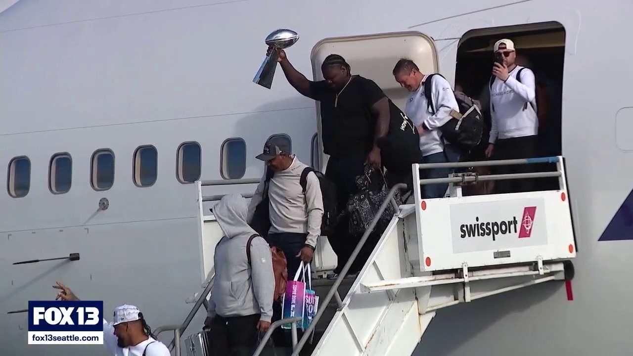 The Seahawks touched down in Seattle on Monday afternoon, returning home as Super Bowl 60 champions ahead of the victory parade.
