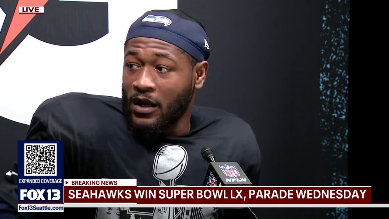 After the Seattle Seahawks’ Super Bowl LX win over the New England Patriots, Seahawks stars including linebacker Ernest Jones and safety Julian Love spoke to the media about the 29-13 victory.