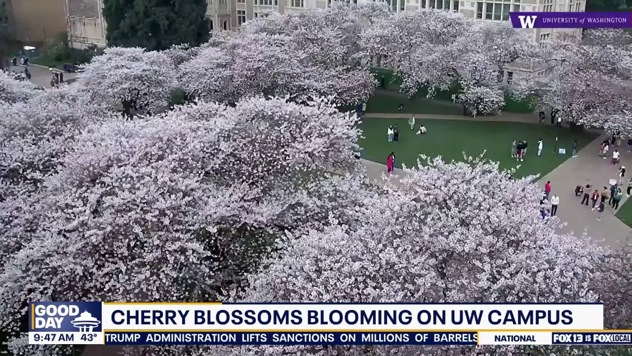 Cherry blossoms at the University of Washington are still approaching peak bloom after cooler temperatures delayed the timeline. Officials now expect the best viewing conditions to arrive midweek, with next weekend offering prime opportunities to visit the Quad.