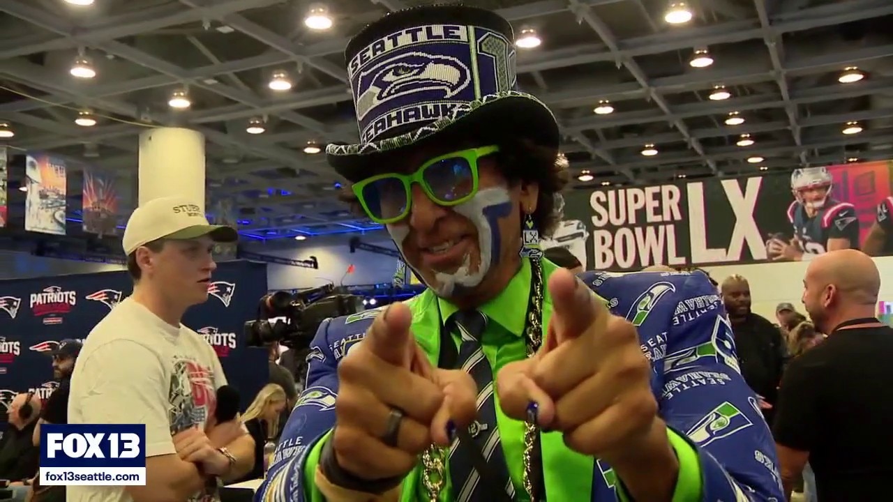One of the Seahawks’ most recognizable superfans, known as “Captain Seahawk,” made a standout appearance on Radio Row during Super Bowl week, drawing attention from fans and media alike.