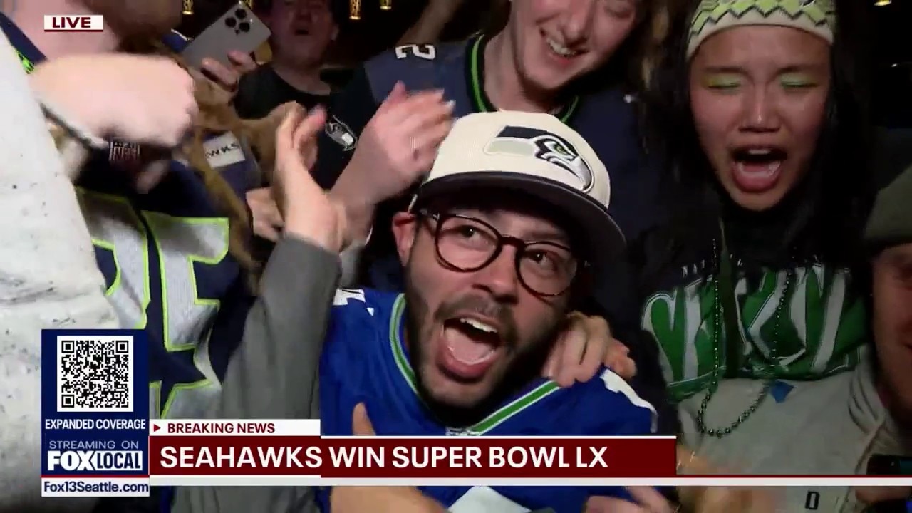 Seahawks fans celebrated across Seattle after the team won Super Bowl LX, packing watch parties and cheering as the final whistle sealed the championship.