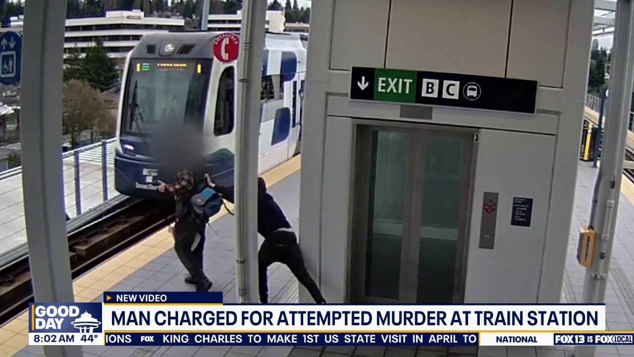 A man accused of trying to push another man in front of a passing light rail train at Seattle's Northgate station has been charged with second-degree attempted murder.