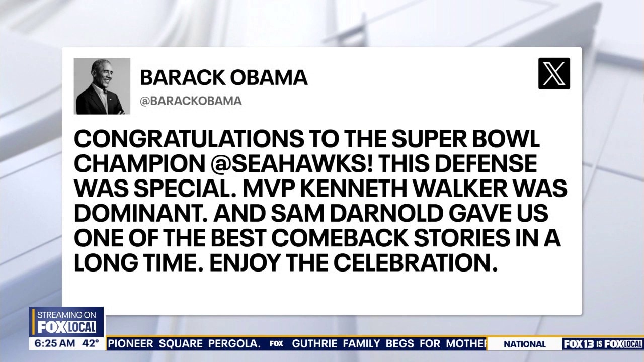 Local leaders, even former President Barack Obama, are celebrating the Seattle Seahawks Super Bowl LX victory.