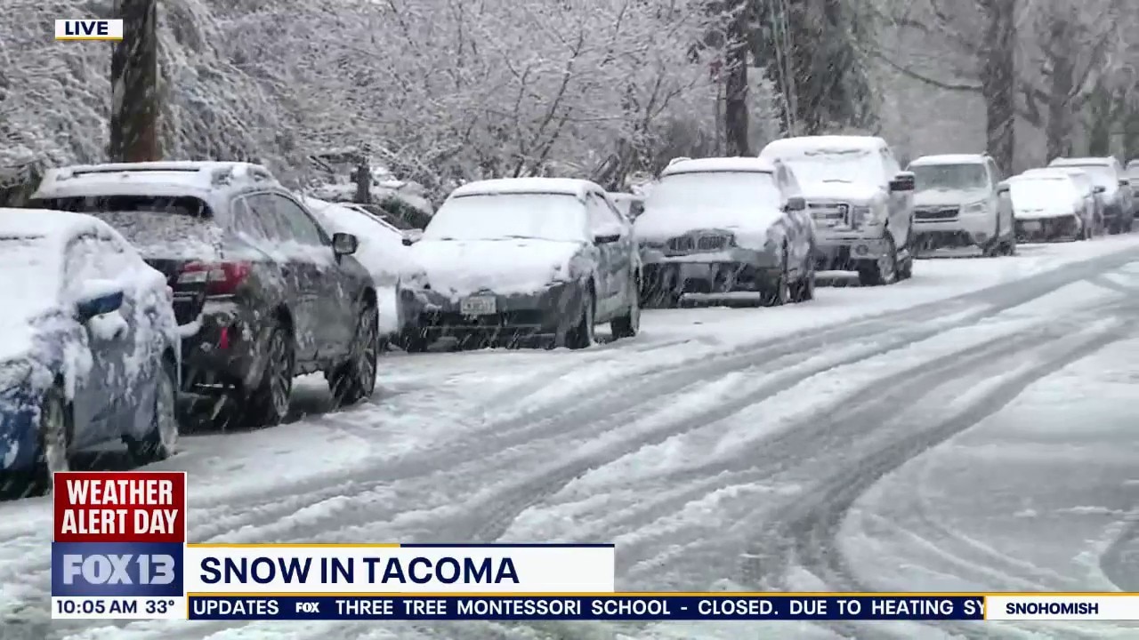 Several roads in Tacoma are covered in slush and snow.